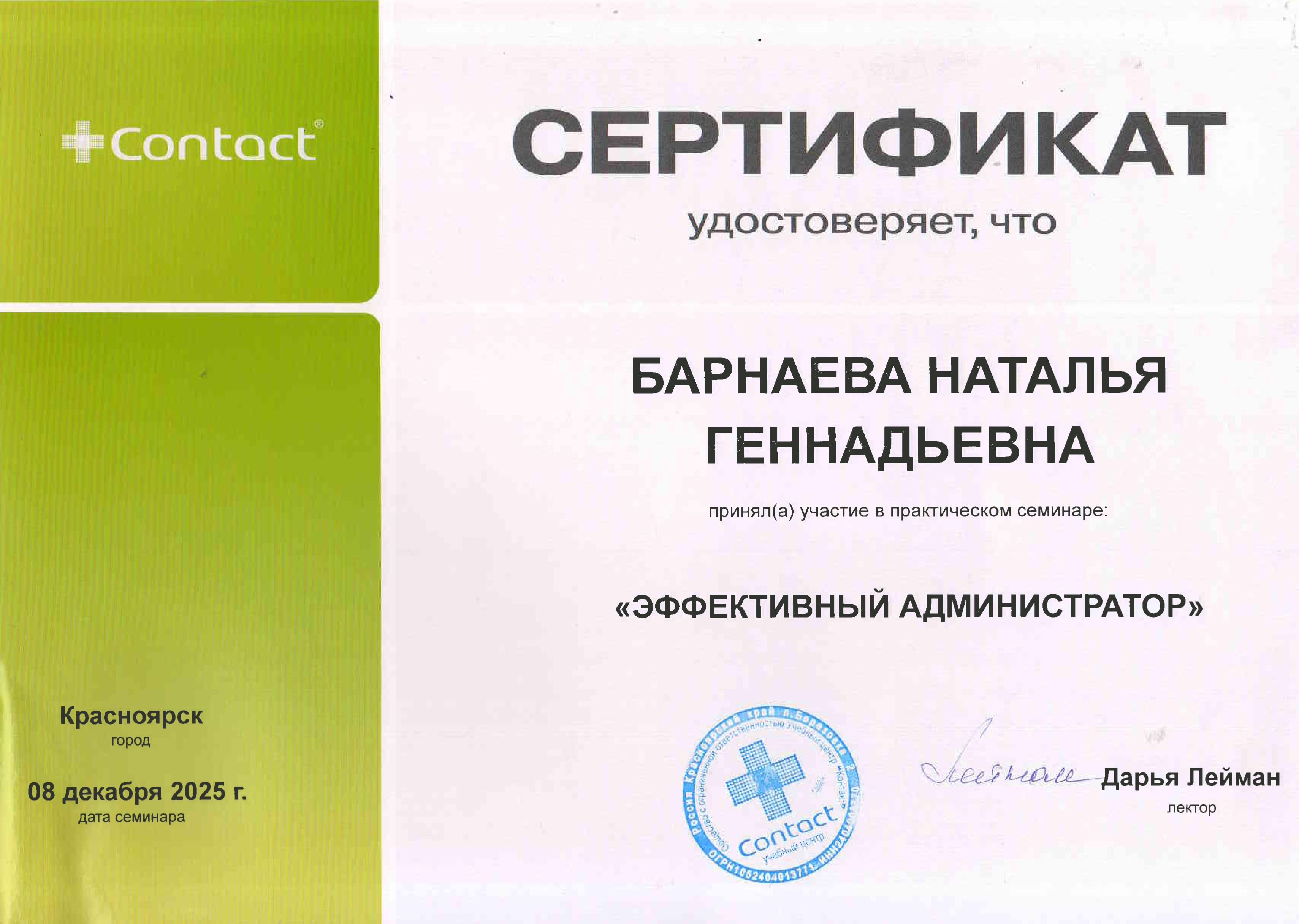 Администратор Выпускница Лесосибирского медицинского училища 2001г.